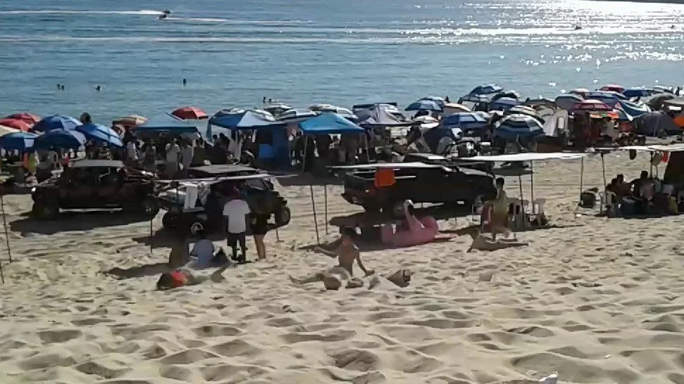 A few days before Easter Sunday, the action moves to the beaches. Families and friends erect sleeping tents along the dunes with covered cooking areas, volleyball nets, and toys for building sandcastles. Men and boys race each other barefoot up and down the beach as women cheer them on. The scene is complete with boogie boards, fishing rods, kayaks, paddleboards,… Jet skis pull yellow, banana shaped boats straddled by kids laughing as they bounce off in the waves. Vendors sell tamales, burritos, and seafood mounded in shells of cracked coconut. An entire community springs up on the dunes for five days of holiday.